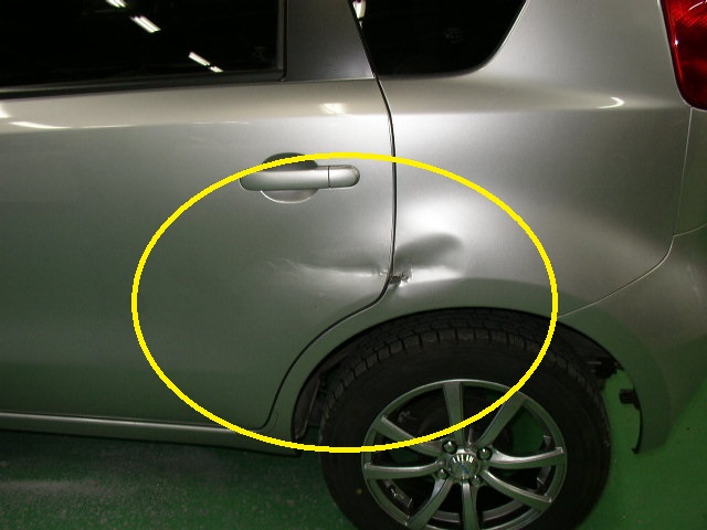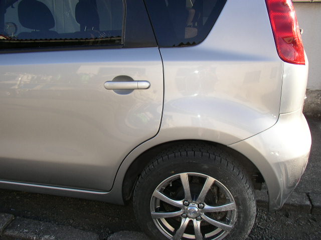 ニッサン ノート 左リヤドアとクォータの修理 (東京都 青梅市)