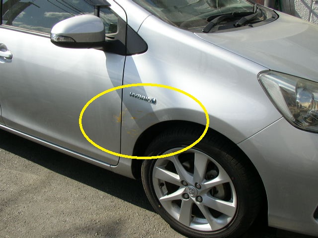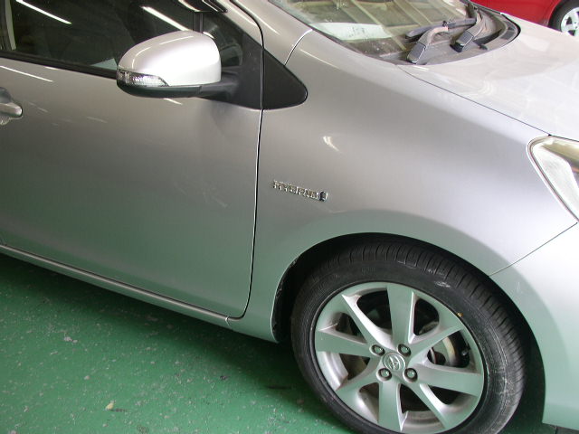 トヨタ アクア 右フロントフェンダとフロントドアの修理 (東京都 青梅市)