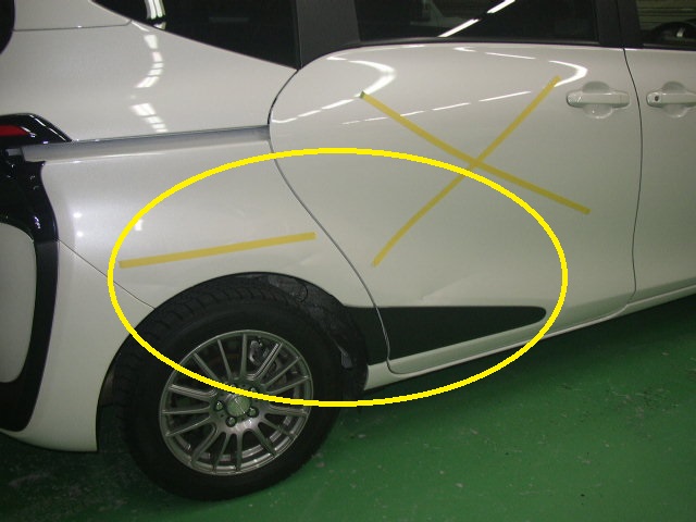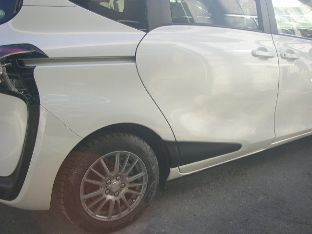 トヨタ スペイド ポールにこすった右リヤドアとクォータの板金修理 (東京都 青梅市)