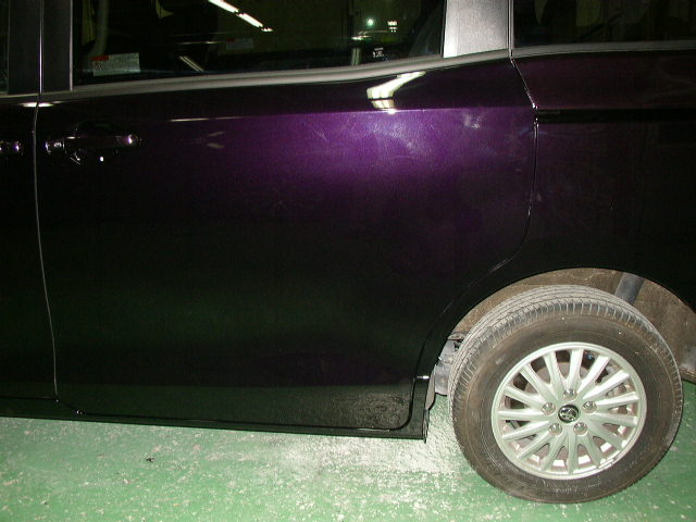 トヨタ ノア ポールにこすった左スライドドアとステップの板金修理 (東京都 青梅市)