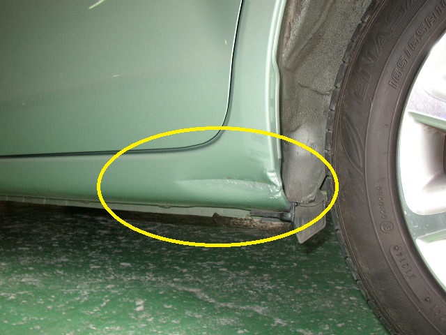 トヨタ パッソ 縁石のぶつけた左ステップの板金修理 (東京都 青梅市)